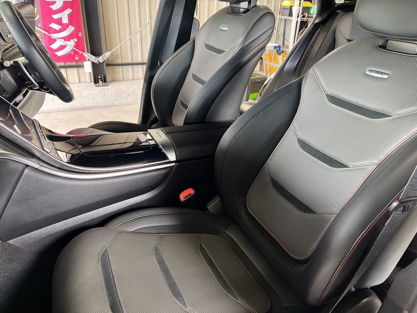 作業内容は、車内清掃、車内樹脂パーツ抗菌コート、レザーシートコーティング、車内ピアノブラックパーツコーティング、外装洗車の作業させていただきました。